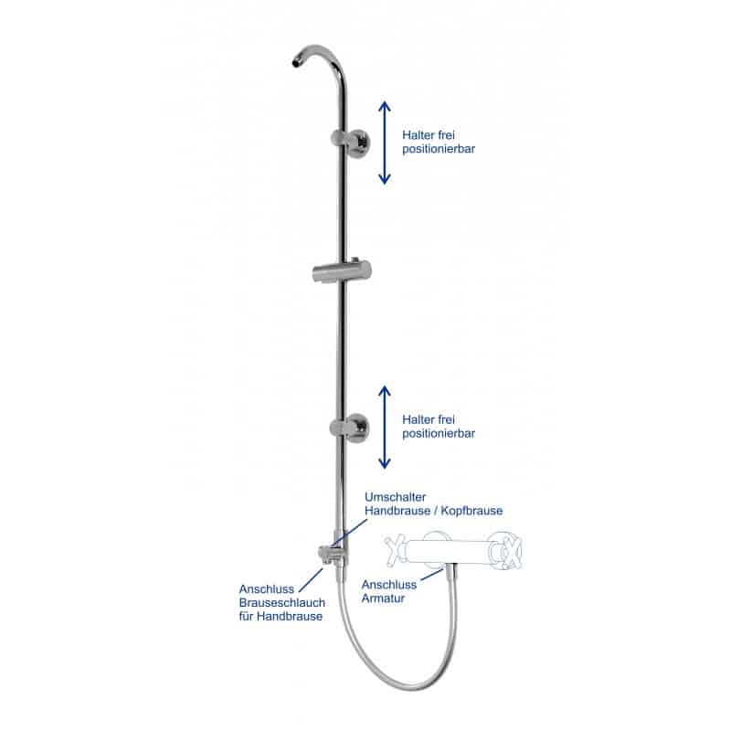 Wasserführende Brausestange mit 60 cm Anschlussschlauch