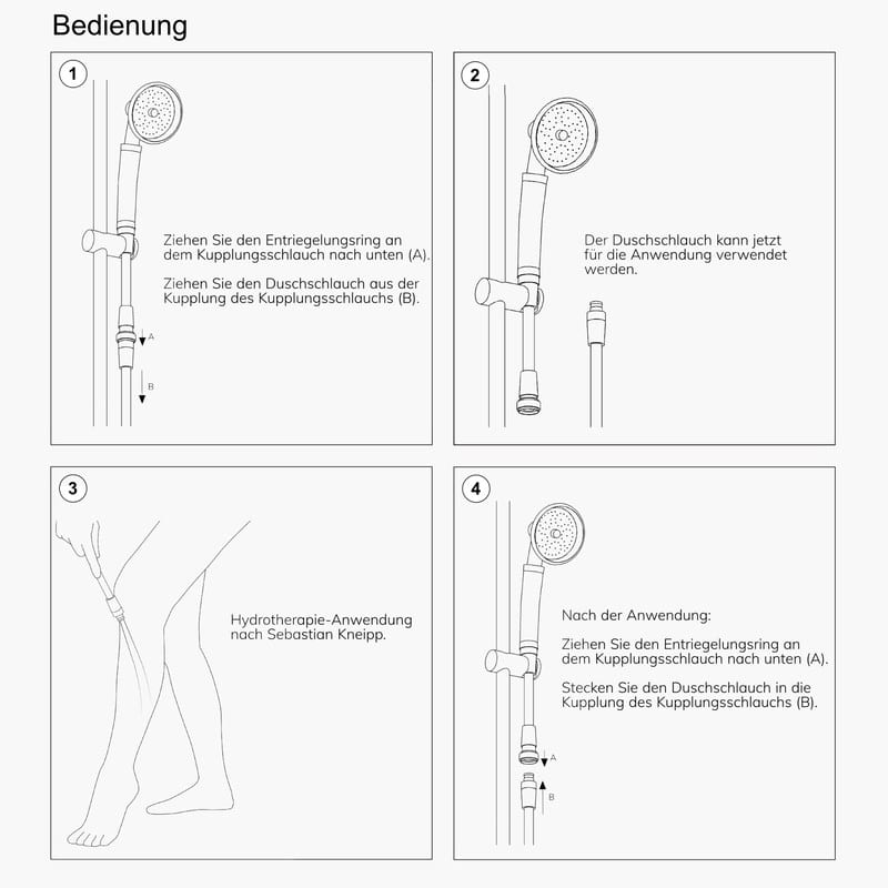 - Hydrotherapie-Schnellkupplung zum schnellen und einfachen Abkoppeln des Brauseschlauchs für Güsse nach Sebastian Kneipp und andere Anwendungen